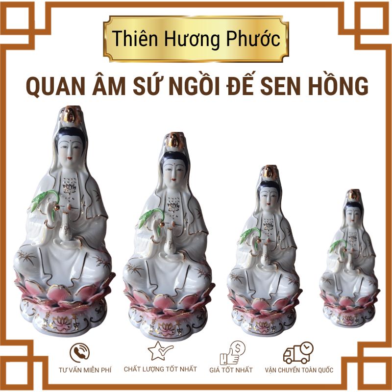 Quan âm sứ ngồi đế sen hồng